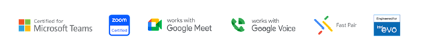 Zone Wireless 2 está certificado para Microsoft Teams como micrófono premium para Open Office. Tiene certificación para Zoom, Google Meet y Google Voice con el receptor Plug and Play. Admite controles de llamadas a través de Bluetooth nativo para Google Meet1Sólo para versión UC. Requiere ChromeOS versión M127 o posteriores y ciertas plataformas de Chromebook.. También cumple con los estrictos requisitos del programa de accesorios para laptops Engineered for Intel Evo2Requiere firmware Zone Wireless 2 versión 1.3.72 o posteriores, lo que garantiza experiencias de audio excepcionales, conectividad perfecta y confiabilidad mientras se conecta a una laptop Intel Evo a través de Bluetooth nativo. Todas las versiones cuentan con certificación para Fast Pair.