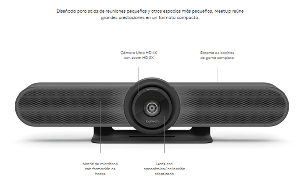 Lente Logitech especial con zoom HD 5x y panorámica (+/- 25°) e inclinación (+/- 15°) robotizadas