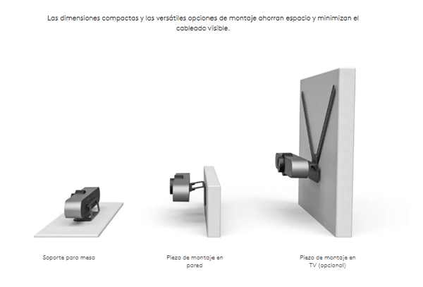 Soporte integrado para mesa/pared; disponible pieza de montaje en TV opcional