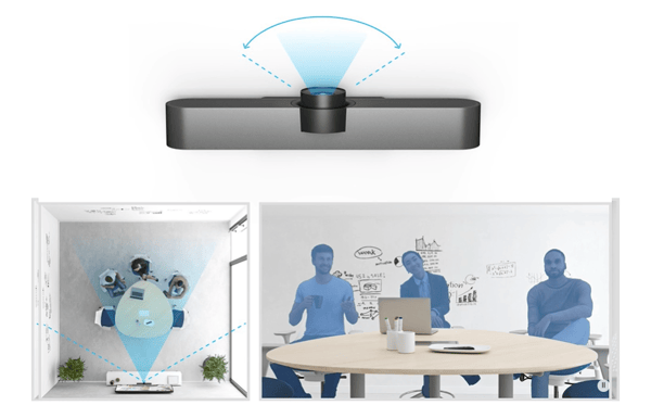Cámara para conferencias todo-en-uno con lente ultra gran angular para salas pequeñas.