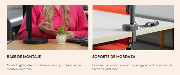 Monte Logitech Reach sobre la mesa en un espacio bien iluminado o bien cambie a un modo compacto y recogido con la mordaza de perfil bajo.